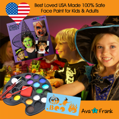 Luckily for savvy consumers the ingredients in the Ava and Frank paint brand are not only FDA compliant but also have the highest USA child toy safety rating. Not many brands can say that, so they are kind of proud of it. The other thing they are even more excited about is that the products are made in the United States and provide jobs and revenue for USA employees, suppliers and their families. The face painting and stencil kits have been bought by many loyal customers who use them for festivals, fiestas, birthday parties, team building, fundraisers, sports, halloween, Christmas, cosplay, theater and bachelorette soirees. Their well-thought-out kits include face paint brushes, sponges, a gift bag, glitter, stencils and other goodies that are re-usable and are great for beginners up to professionals. No art degree needed as they send out an in-depth E-book with face painting ideas and designs, as well as having all the supplies needed to get a party started, so it’s covered!