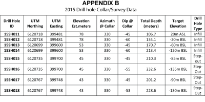 High Grade Intervals from Drill holes 15SH013 and 15SH014