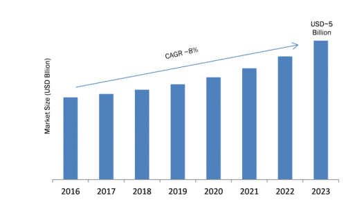 The global Rugged Display Market is expected to grow at USD ~10 Billion by 2023, at ~5% of CAGR between 2017 and 2023.