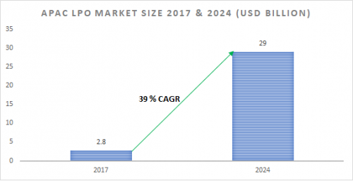 Asia Pacific legal process outsourcing (LPO) market value exceeded USD 2.8 Billion in 2017 and is growing at over 39% from 2018 to 2024