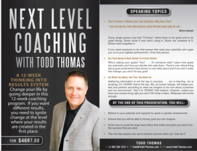 Todd further added: “Making life worthwhile means having a meaningful mission and defined intentions. Some people call these ‘goals’. In my coaching program, if a business team or individual will share with me what their goals are or let me help them define worthy goals, I can show them how to reach them. I can show them how to get them. And I’ll be there with them coaching them along the way. I can help anyone THINK themselves into the results that they want!”
