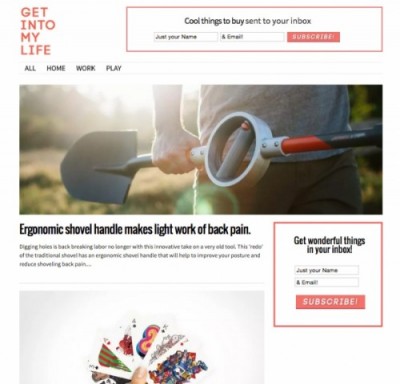Some sites may go so far as to curate product selections, however often niching the market down too far. ie tools for indoor gardeners. Catering it’s product selection only so far as to meet a design and function mix criteria, Posts ranging from ergonomic shovels designed for outdoor enthusiasts, to an artist’s pencil milled from a single block of aeronautics grade aluminium. This deconstruction of a niche based marketing, pushes Get Into My Life’s content into a more overarching theme of ‘functional design’