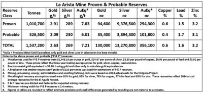The cut-off date for data inclusion in the reserve report was December 31, 2014. All drilling, sampling and data collected since January 1, 2015, was excluded from the report. The proven and probable reserve report focuses entirely on the Arista deposit which remains open along strike and depth. The Company expects to add additional tonnes and ounces at Arista with infill, step-out and exploration drilling. The Company also expects to add to its mineralized material zones with infill, step-out and exploration drilling.