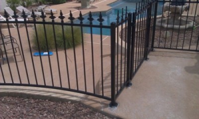 There are several types of pool fence options but wrought iron fences and gates are the most popular, being ideal for community pools, but can be used to protect residential pools as well. All gates need to be self closing so that they automatically close when entering or leaving the pool area. The picket length should be 60″ high and the total fence should be 66 ” high. There should never be any type of scrolls or decorative items in the fence that could encourage climbing. Items should never be stored against or around the fence that could entice children to climb the fence to get access. All work should be done by a licensed contractor so it is within code.