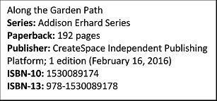 Along the Garden Path is a Young Adult Fiction novel which takes place in outside of Washington, D.C., in McLean Virginia. Seventeen-year-old Addison Erhard dreams of attending Columbia University and becoming a world-traveling journalist. She meets Mason Gentry, who wants nothing more than to manage his family’s large farm in Marshall, Virginia. These two develop an unlikely relationship as they explore who they want to become. Everything is going well, until a friend of theirs is a victim of a hit-and-run accident. Addison uses her journalistic know-how to uncover the truth. What she discovers is more than she bargained for.