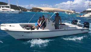 You can reserve the 26′ Twin Vee power boat and be picked up on either St John or St Thomas, USVI. Go to http://BeachBumBoatRentals.com.