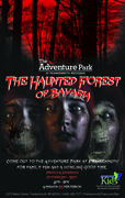 The Haunted Forest trail is set within the woodlands of the Adventure Park and is themed as a true scare. Actors in scenes along the Haunted Trail will spook and surprise all trail walkers as they move through the forest. Werewolves, animated scarecrows, movie characters, scary clowns and ghoulish spirits will be ready to excite and entertain visitors. The Adventure Park aerial courses will also be open to climbing and zip lining activity during all hours of the Haunted Forest Walk. Tickets are available for either or both attractions.