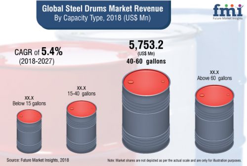 The 40-60 gallon steel drums currently hold around 3/4th share of the total market value, and are projected for the highest yearly revenue growth in 2019 and ahead.