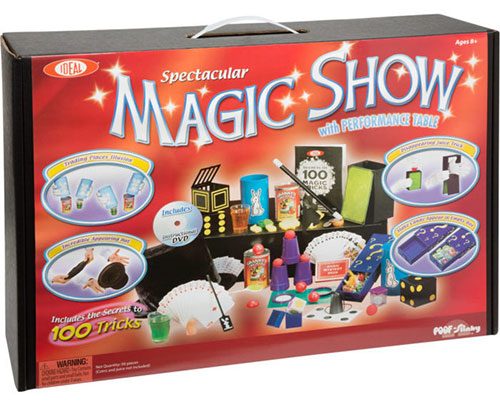 The specific models which are identified on the blog list include the Ideal 100-Trick Spectacular Magic Show Suitcase; Starter Magic Tricks Set for Kids; Jumbo Magic Tricks Set for Kids; Melissa & Doug Deluxe Solid-Wood Magic Set and Jim Stott’s “My First Magic Kit”. The Ideal set provides the largest number of tricks at one hundred.